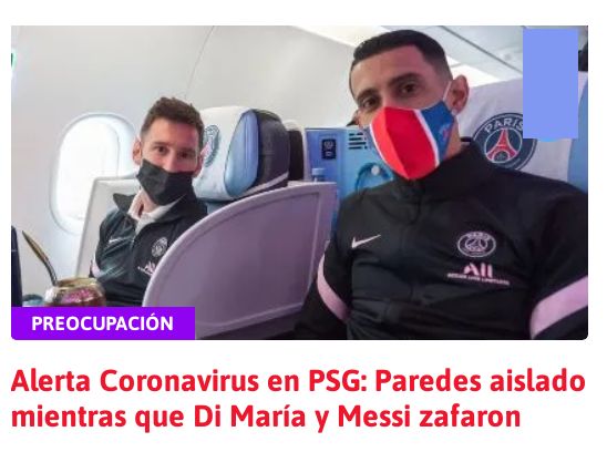 ALERTA CORONAVIRUS EN PSG: PAREDES AISLADO MIENTRAS QUE DI MARÍA Y MESSI ZAFARON Posted on diciembre 22, 2021 por coronado https://www.depo.com.ar/futbolinternacional/Alerta-Coronavirus-en-PSG-Paredes-aislado-mientras-que-Di-Maria-y-Messi-zafaron--20211222-0011.html