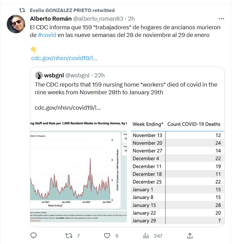 ES «LEVE» El CDC informa que 159 *trabajadores* de hogares de ancianos murieron de #covid en las nueve semanas del 28 de noviembre al 29 de enero Posted on febrero 3, 2023 por coronado