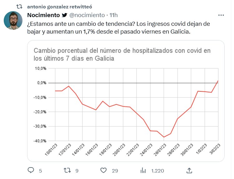 ¿Estamos ante un cambio de tendencia? Los ingresos covid dejan de bajar y aumentan un 1,7% desde el pasado viernes en Galicia Posted on febrero 3, 2023 por coronado