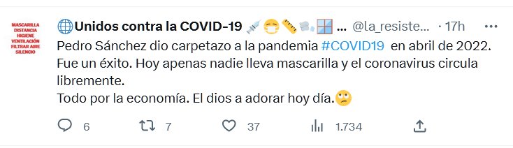 Pedro Sánchez dio carpetazo a la pandemia #COVID19 en abril de 2022. Fue un éxito. Hoy apenas nadie lleva mascarilla y el coronavirus circula libremente. Todo por la economía. El dios a adorar hoy día.🙄