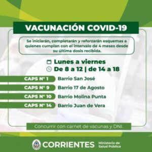 CORRIENTES Salud Pública comunica cronograma de las vacunas contra Covid-19 y Gripe Posted on febrero 6, 2023 por coronado http://www.impactocorrientes.com/notix/noticia/220949_salud_p%C3%BAblica_comunica_cronograma_de_las_vacunas_contra_covid-19_y_gripe.htm