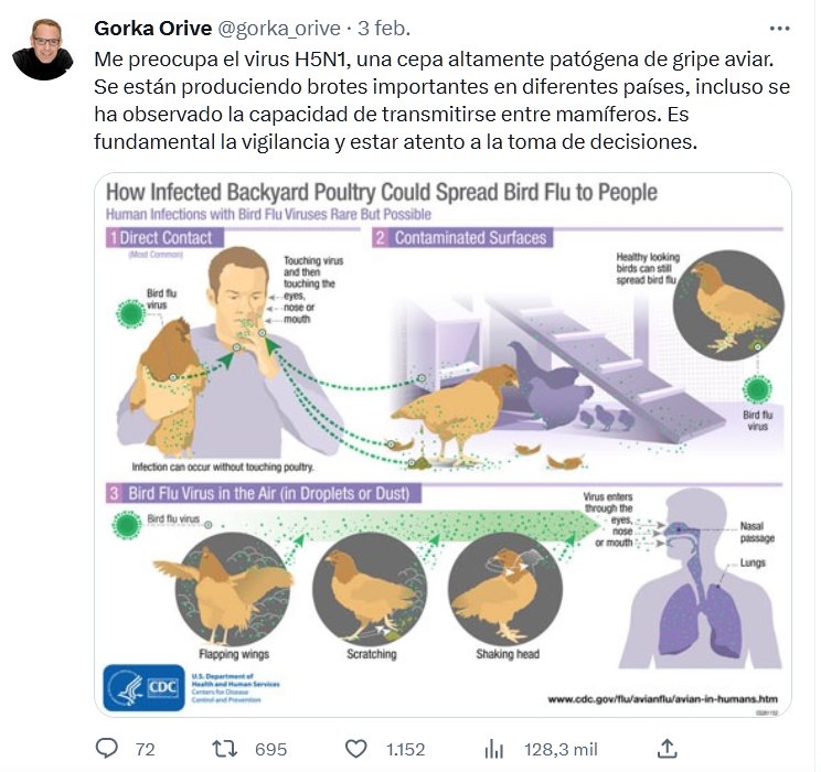 PARAPANDEMIA-SS Me preocupa el virus H5N1, una cepa altamente patógena de gripe aviar. Se están produciendo brotes importantes en diferentes países, incluso se ha observado la capacidad de transmitirse entre mamíferos. Es fundamental la vigilancia y estar atento a la toma de decisiones.