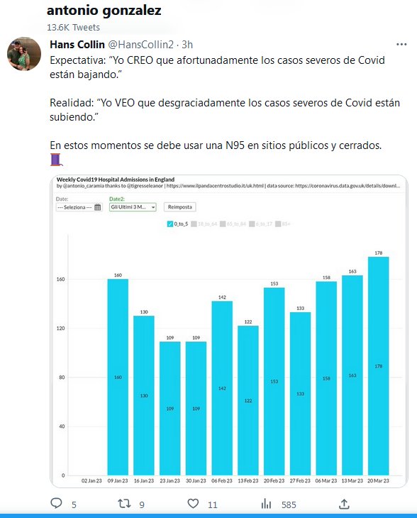ESTARÁN BAJANDO, ESTARÁN SUBIENDO, PERO ESTÁN! CUIDATE NO SEA QUE BAJES, A LA TUMBA! Expectativa: “Yo CREO que afortunadamente los casos severos de Covid están bajando.” Realidad: “Yo VEO que desgraciadamente los casos severos de Covid están subiendo.” En estos momentos se debe usar una N95 en sitios públicos y cerrados.