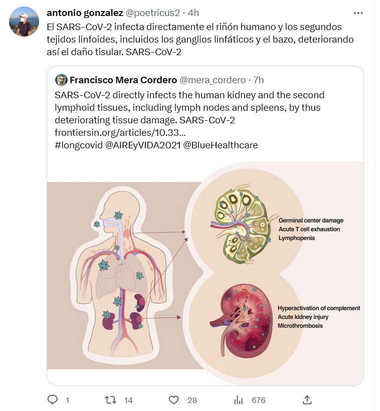 El SARS-CoV-2 infecta directamente el riñón humano y los segundos tejidos linfoides, incluidos los ganglios linfáticos y el bazo, deteriorando así CON el daño tisular. SARS-CoV-2 Posted on marzo 26, 2023 por coronado