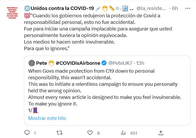 💯»Cuando los gobiernos redujeron la protección de Covid a responsabilidad personal, esto no fue accidental. Fue para iniciar una campaña implacable para asegurar que usted personalmente tuviera la opinión equivocada. Los medios te hacen sentir invulnerable. Para que lo ignores.»