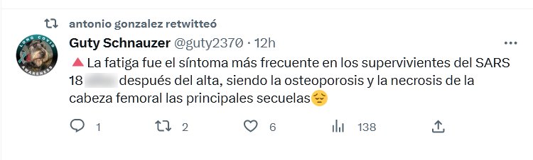 🔺La fatiga fue el síntoma más frecuente en los supervivientes del SARS 18 MESES después del alta, siendo la osteoporosis y la necrosis de la cabeza femoral las principales secuelas😔 Posted on marzo 28, 2023 por coronado