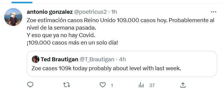SEGURO QUE LA PANDEMIA ES HISTORIA? Estimación casos Reino Unido 109.000 casos hoy. Probablemente al nivel de la semana pasada. Y eso que ya no hay Covid. ¡109.000 casos más en un solo día! Posted on marzo 29, 2023 por coronado