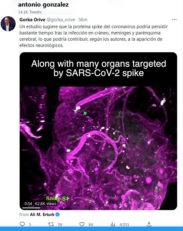 Un estudio sugiere que la proteína spike del coronavirus podría persistir bastante tiempo tras la infección en cráneo, meninges y parénquima cerebral, lo que podría contribuir, según los autores, a la aparición de efectos neurológicos.