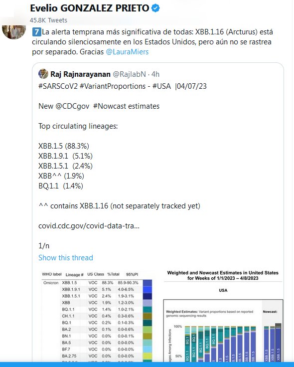 La alerta temprana más significativa de todas: XBB.1.16 (Arcturus) está circulando silenciosamente en los Estados Unidos, pero aún no se rastrea por separado Posted on abril 7, 2023 por coronado