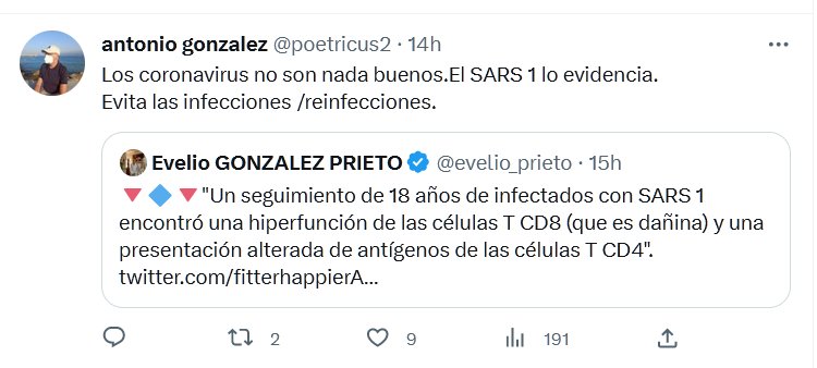 COVID ES SARS-COV2 Los coronavirus no son nada buenos. El SARS 1 lo evidencia. Evita las infecciones /reinfecciones. «Un seguimiento de 18 años de infectados con SARS 1 encontró una hiperfunción de las células T CD8 (que es dañina) y una presentación alterada de antígenos de las células T CD4».