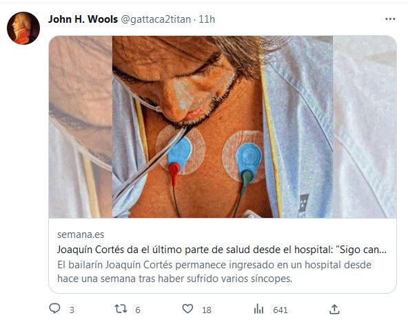«NOCOVID» HACE ESTRAGOS «Aún sin diagnóstico claro aparte de una grave neumonía» Joaquín Cortés da el último parte de salud desde el hospital: «Sigo cansado» Joaquín Cortés permanece ingresado desde hace una semana tras haber sufrido varios síncopes