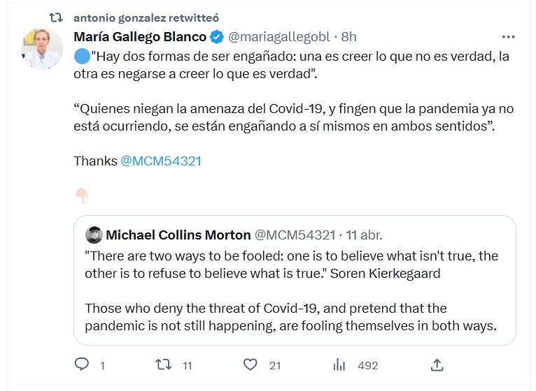 🔵»Hay dos formas de ser engañado: una es creer lo que no es verdad, la otra es negarse a creer lo que es verdad». “Quienes niegan la amenaza del Covid-19, y fingen que la pandemia ya no está ocurriendo, se están engañando a sí mismos en ambos sentidos”.