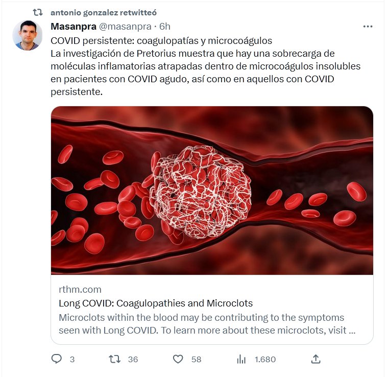 COVID persistente: coagulopatías y microcoágulos La investigación de Pretorius muestra que hay una sobrecarga de moléculas inflamatorias atrapadas dentro de microcoágulos insolubles en pacientes con COVID agudo, así como en aquellos con COVID persistente.