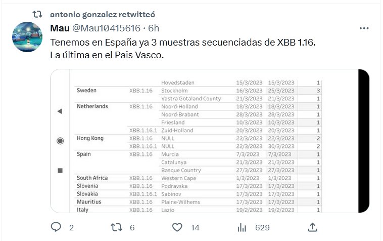 LA ARCTURUS YA LLEGÓ A ESPAÑA Tenemos en España ya 3 muestras secuenciadas de XBB 1.16. La última en el Pais Vasco. Posted on abril 12, 2023 por coronado
