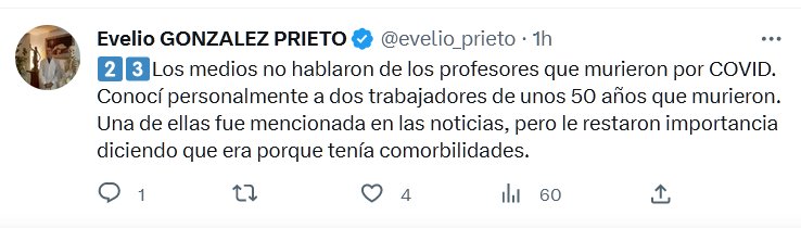 GENOCIDIO EN CURSO Los medios no hablaron de los profesores que murieron por COVID. Conocí personalmente a dos trabajadores de unos 50 años que murieron. Una de ellas fue mencionada en las noticias, pero le restaron importancia diciendo que era porque tenía comorbilidades.