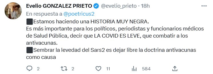 ⬛️Estamos haciendo una HISTORIA MUY NEGRA. Es más importante para los políticos, periodistas y funcionarios médicos de Salud Pública, decir que LA COVID ES LEVE, que combatir a los antivacunas. ⬛️Sembrar la levedad del Sars2 es dejar libre la doctrina antivacunas como causa