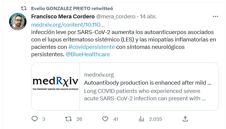 «ES LEVE» Infección leve por SARS-CoV-2 aumenta los autoanticuerpos asociados con el lupus eritematoso sistémico (LES) y las miopatías inflamatorias en pacientes con #covidpersistente con síntomas neurológicos persistentes. @BlueHealthcare
