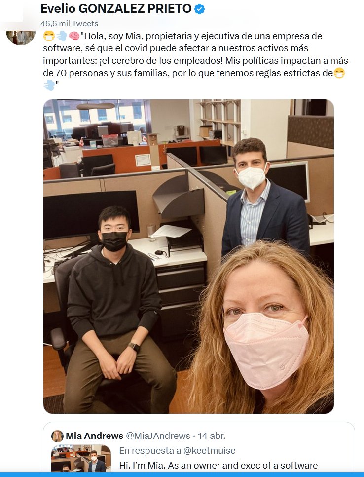 ¡QUIERO SER TU EMPLEADO! 😷💨🧠»Hola, soy Mia, propietaria y ejecutiva de una empresa de software, sé que el covid puede afectar a nuestros activos más importantes: ¡el cerebro de los empleados! Mis políticas impactan a más de 70 personas y sus familias, por lo que tenemos reglas estrictas de😷💨»