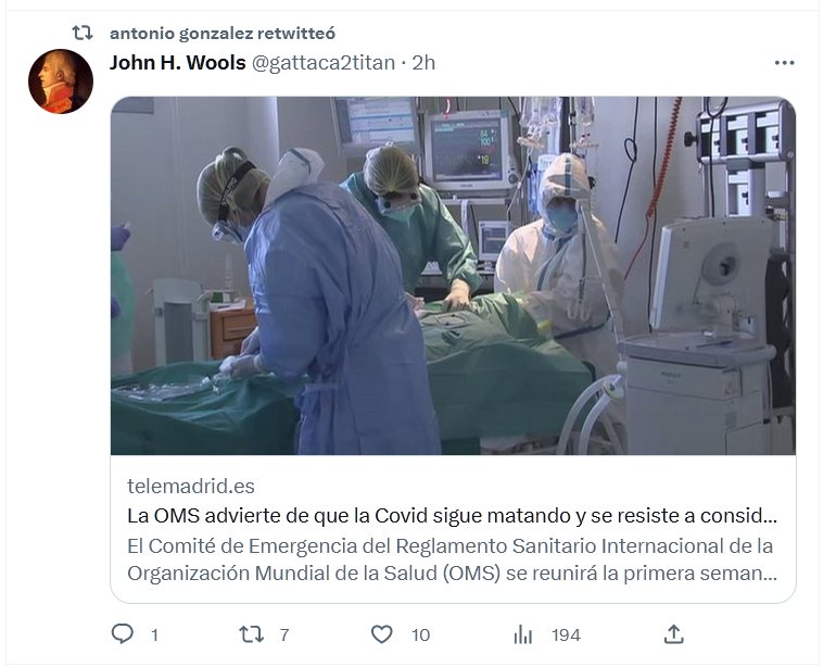 Coronavirus COVID-19 La OMS advierte de que la Covid sigue matando y se resiste a considerarla una enfermedad «endémica» Posted on abril 19, 2023 por coronado OÍD MORTALES EL GRITO SAGRADO.... ¡ LA VERDAD ! , ¡ LA VERDAD ! , ¡ LA VERDAD ! https://www.telemadrid.es/coronavirus-covid-19/La-OMS-advierte-de-que-la-Covid-sigue-matando-y-se-resiste-a-considerarla-una-enfermedad-endemica-0-2552444749--20230419115853.html
