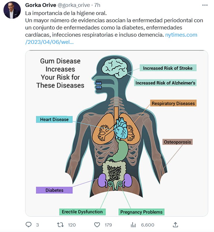 TE RECOMIENDO CEPILLO DE DIENTES Y LUEGO BARBIJO La importancia de la higiene oral. Un mayor número de evidencias asocian la enfermedad periodontal con un conjunto de enfermedades como la diabetes, enfermedades cardíacas, infecciones respiratorias e incluso demencia