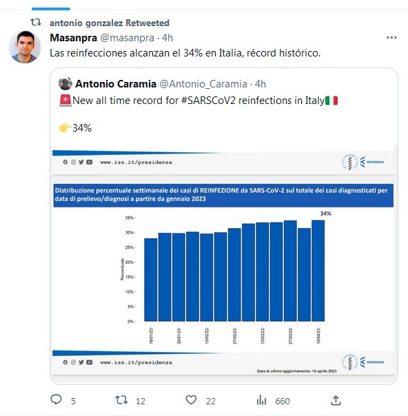 SEGURO QUE LA PANDEMIA TERMINÓ? Las reinfecciones alcanzan el 34% en Italia, récord histórico. Posted on abril 21, 2023 por coronado