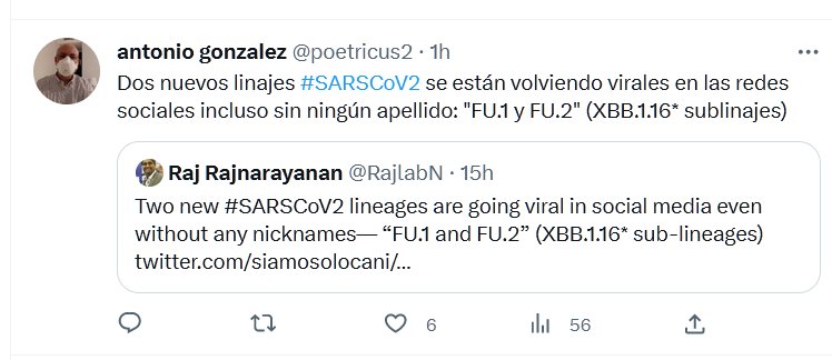 Dos nuevos linajes #SARSCoV2 se están volviendo virales en las redes sociales incluso sin ningún apellido: «FU.1 y FU.2» (XBB.1.16* sublinajes) Posted on abril 23, 2023 por coronado