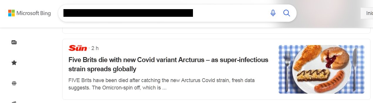 EN INGLÉS Cinco británicos mueren con la nueva variante de Covid Arcturus, a medida que la cepa superinfecciosa se propaga por todo el mundo Posted on abril 24, 2023 por coronado https://www.thesun.co.uk/health/22140920/arcturus-covid-deaths-britain/ LA NOTICIA EN BING: