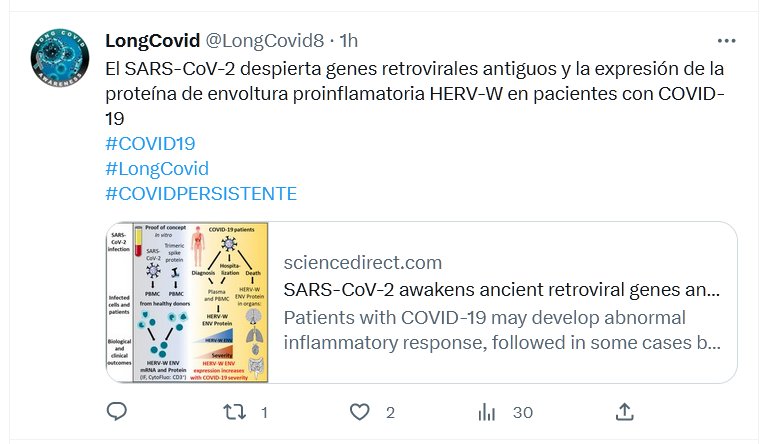 LA CAJA DE PANDORA ESTÁ ABIERTA: El SARS-CoV-2 despierta genes retrovirales antiguos y la expresión de la proteína de envoltura proinflamatoria HERV-W en pacientes con COVID-19 #COVID19 #LongCovid #COVIDPERSISTENTE