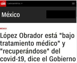 SERÁ CIERTO QUE LE DIO UN INFARTO LUEGO DE SU 3º INFECCIÓN? López Obrador está «bajo tratamiento médico» y «recuperándose» del covid-19, dice el Gobierno Posted on abril 24, 2023 por coronado https://cnnespanol.cnn.com/2023/04/24/lopez-obrador-covid-19-orix/