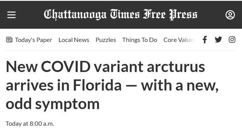 EMPIEZA LA INVASION (EN INGLÉS) Nueva variante de COVID arcturus llega a Florida Posted on abril 26, 2023 por coronado https://www.timesfreepress.com/news/2023/apr/26/new-covid-variant-arcturus-arrives-tfp/