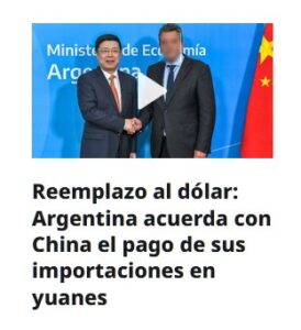 FUTURO MUNDO POSTPANDÉMICO Reemplazo al dólar: Argentina acuerda con China el pago de sus importaciones en yuanes Posted on abril 27, 2023 por coronado https://actualidad.rt.com/actualidad/465226-argentina-acordar-china-importaciones-yuanes