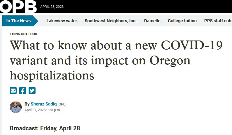 EE.UU. (EN INGLÉS) Qué saber sobre una nueva variante de COVID-19 y su impacto en las hospitalizaciones de Oregón Posted on abril 28, 2023 por coronado https://www.opb.org/article/2023/04/27/think-out-loud-new-covid-19-variant-arcturus-oregon/