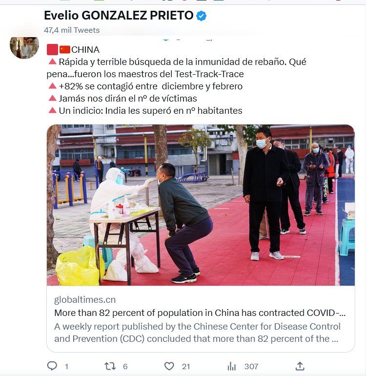 LA POLÍTICA NUNCA FUE LA SOLUCIÓN, FUE EL PROBLEMA 🟥🇨🇳CHINA 🔺Rápida y terrible búsqueda de la inmunidad de rebaño. Qué pena…fueron los maestros del Test-Track-Trace 🔺+82% se contagió entre diciembre y febrero 🔺Jamás nos dirán el nº de víctimas 🔺Un indicio: India les superó en nº habitantes