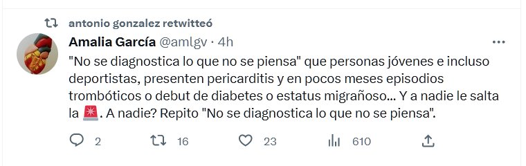 POSTCOVID HACE ESTRAGOS «No se diagnostica lo que no se piensa» que personas jóvenes e incluso deportistas, presenten pericarditis y en pocos meses episodios trombóticos o debut de diabetes o estatus migrañoso… Y a nadie le salta la 🚨. A nadie? Repito «No se diagnostica lo que no se piensa».
