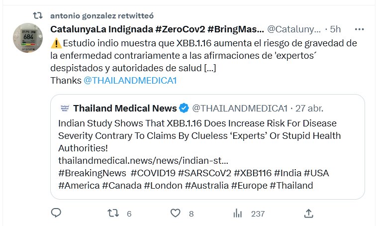 DE NUEVO «ES LEVE»… ⚠️Estudio indio muestra que XBB.1.16 aumenta el riesgo de gravedad de la enfermedad contrariamente a las afirmaciones de ‘expertos´ despistados y autoridades de salud […] Posted on abril 30, 2023 por coronado
