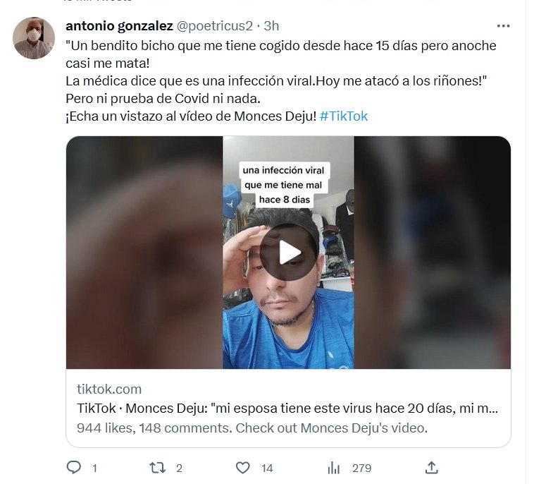 @moncesdeju mi esposa tiene este virus hace 20 días, mi madre lleva un mes y mi hijo mayor completo 15 días, para todos a tenido variedad en la intensidad, pero lo de anoche fue horrible, de verdad sentí que moría, por la fiebre y la dificultad para respirar, no alcance a decir que también da diarrea, y una inflamación de estómago, eso nos dió a todos en casa#enfermedad #virus