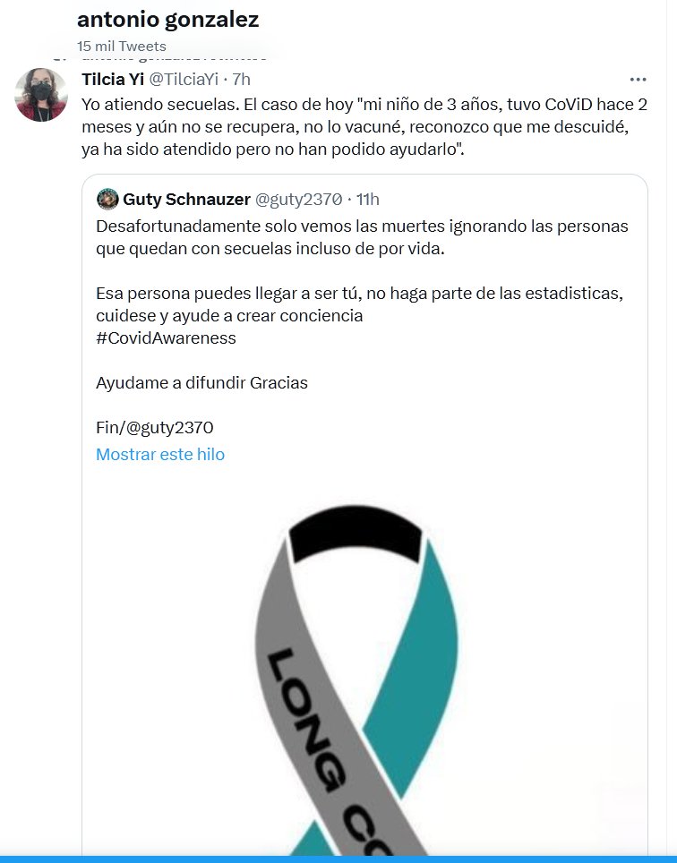 Yo atiendo secuelas. El caso de hoy «mi niño de 3 años, tuvo CoViD hace 2 meses y aún no se recupera, no lo vacuné, reconozco que me descuidé, ya ha sido atendido pero no han podido ayudarlo».