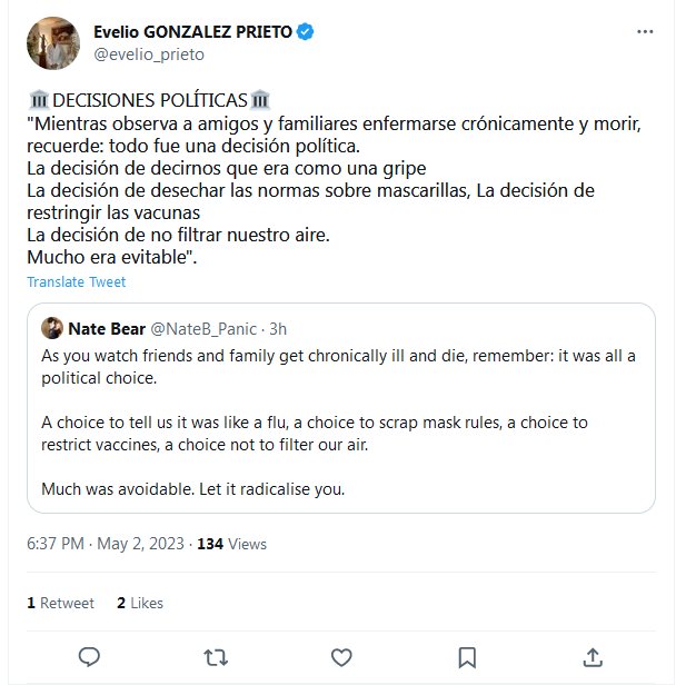 🏛️DECISIONES POLÍTICAS🏛️ «Mientras observa a amigos y familiares enfermarse crónicamente y morir, recuerde: todo fue una decisión política. La decisión de decirnos que era como una gripe La decisión de desechar las normas sobre mascarillas, La decisión de restringir las vacunas La decisión de no filtrar nuestro aire. Mucho era evitable».