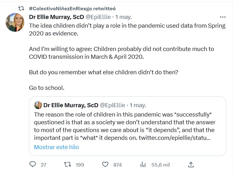 NO TE DEJES ENGAÑAR! (EN INGLÉS) La idea de que los niños no desempeñaron un papel en la pandemia utilizó datos de la primavera de 2020 como evidencia. Y estoy dispuesto a estar de acuerdo: los niños probablemente no contribuyeron mucho a la transmisión de COVID en marzo y abril de 2020. Pero, ¿recuerdas qué más no hacían los niños entonces? Ir al colegio