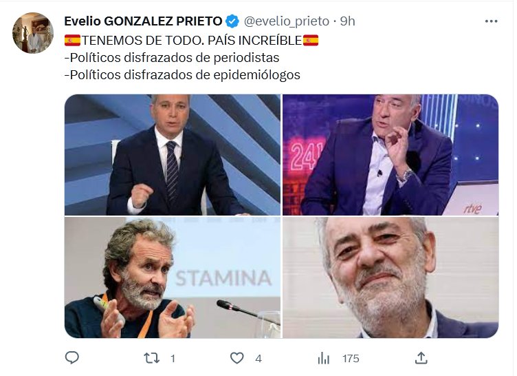 NO ES SU PAÍS DOCTOR ¡ES EL MUNDO! Evelio GONZALEZ PRIETO @evelio_prieto · 🇪🇸TENEMOS DE TODO. PAÍS INCREÍBLE🇪🇸 -Políticos disfrazados de periodistas -Políticos disfrazados de epidemiólogos Posted on mayo 8, 2023 por coronado