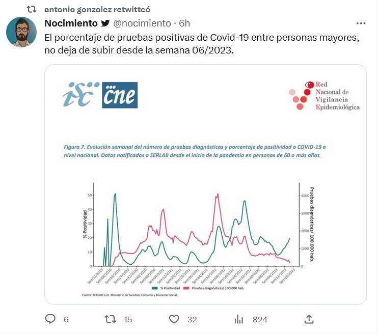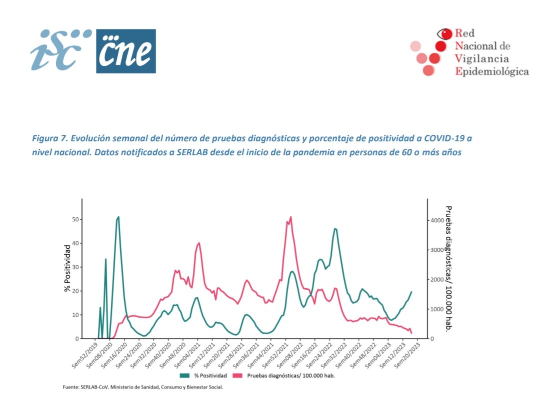 El porcentaje de pruebas positivas de Covid-19 entre personas mayores, no deja de subir desde la semana 06/2023. Posted on mayo 9, 2023 por coronado