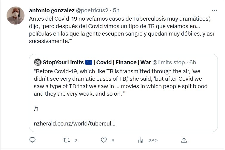 POSTCOVID HACE ESTRAGOS Antes del Covid-19 no veíamos casos de Tuberculosis muy dramáticos’, dijo, ‘pero después del Covid vimos un tipo de TB que veíamos en… películas en las que la gente escupen sangre y quedan muy débiles, y así sucesivamente.'»