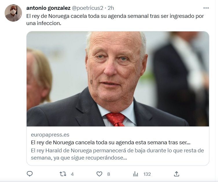 «NOCOVID» HACE ESTRAGOS El rey de Noruega cacela toda su agenda semanal tras ser ingresado por una infeccion Posted on mayo 10, 2023 por coronado