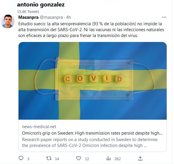 Estudio sueco: la alta seroprevalencia (93 % de la población) no impide la alta transmisión del SARS-CoV-2. Ni las vacunas ni las infecciones naturales son eficaces a largo plazo para frenar la transmisión del virus.