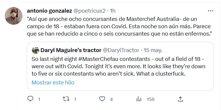 LA PANDEMIA TERMINÓ O TERMINARON DE ESCONDERLA? «Así que anoche ocho concursantes de Masterchef Australia- de un campo de 18 – estaban fuera con Covid. Esta noche son aún más. Parece que se han reducido a cinco o seis concursantes que no están enfermos.»