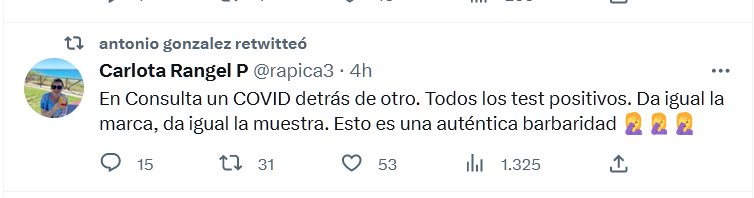 TESTIMONIOS: MÉDICA PEDIÁTRICA DRA. Carlota Rangel P @rapica3 · En Consulta un COVID detrás de otro. Todos los test positivos. Da igual la marca, da igual la muestra. Esto es una auténtica barbaridad 🤦♀️🤦♀️🤦♀️