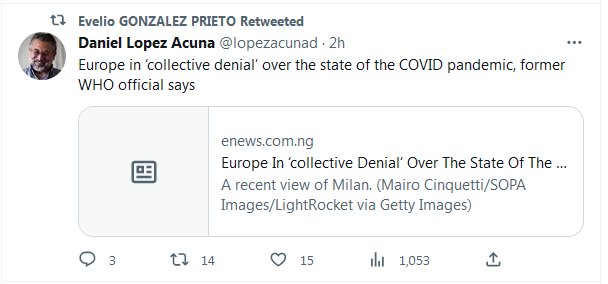 EN INGLÉS Europa en ‘negación colectiva’ sobre el estado de la pandemia de COVID, dice exfuncionario de la OMS Posted on mayo 20, 2023 por coronado