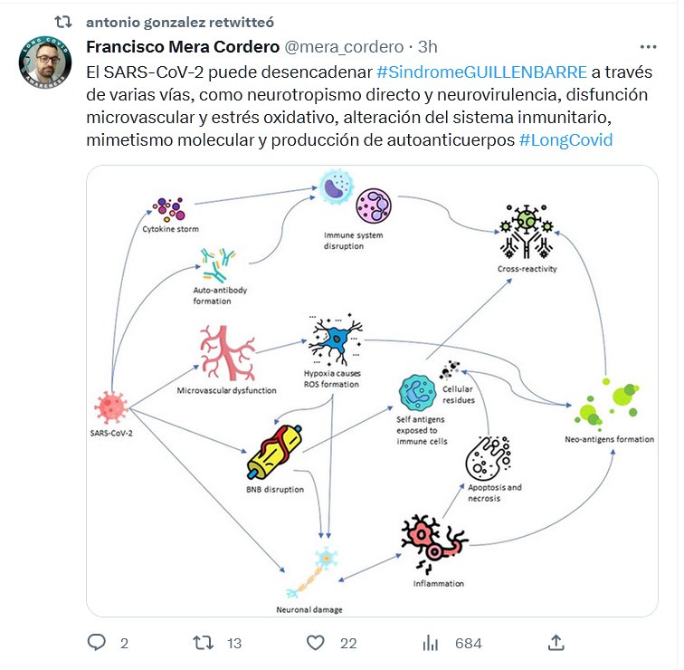 El SARS-CoV-2 puede desencadenar #SindromeGUILLENBARRE a través de varias vías, como neurotropismo directo y neurovirulencia, disfunción microvascular y estrés oxidativo, alteración del sistema inmunitario, mimetismo molecular y producción de autoanticuerpos #LongCovid