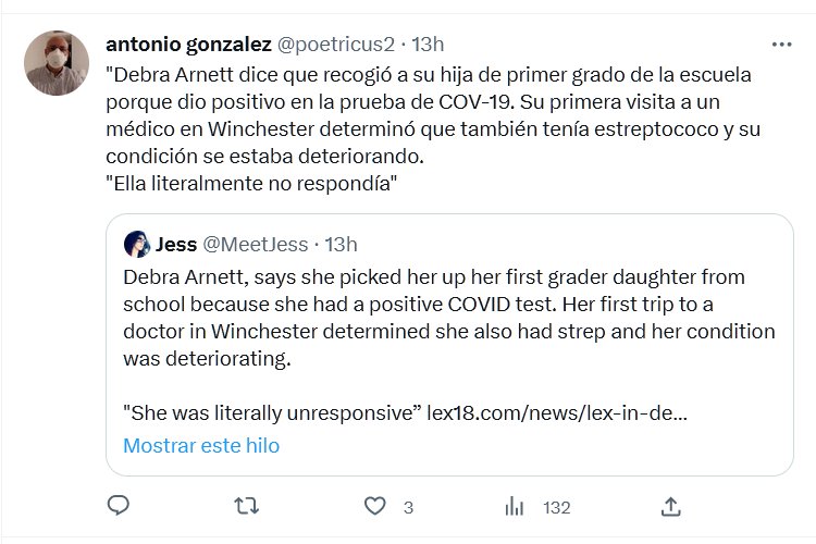 GENOCIDIO EN CURSO: TESTIMONIOS «Debra Arnett dice que recogió a su hija de primer grado de la escuela porque dio positivo en la prueba de COV-19. Su primera visita a un médico en Winchester determinó que también tenía estreptococo y su condición se estaba deteriorando. «Ella literalmente no respondía»