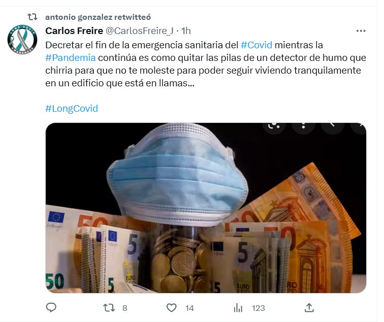 Decretar el fin de la emergencia sanitaria del #Covid mientras la #Pandemia continúa es como quitar las pilas de un detector de humo que chirria para que no te moleste para poder seguir viviendo tranquilamente en un edificio que está en llamas… #LongCovid